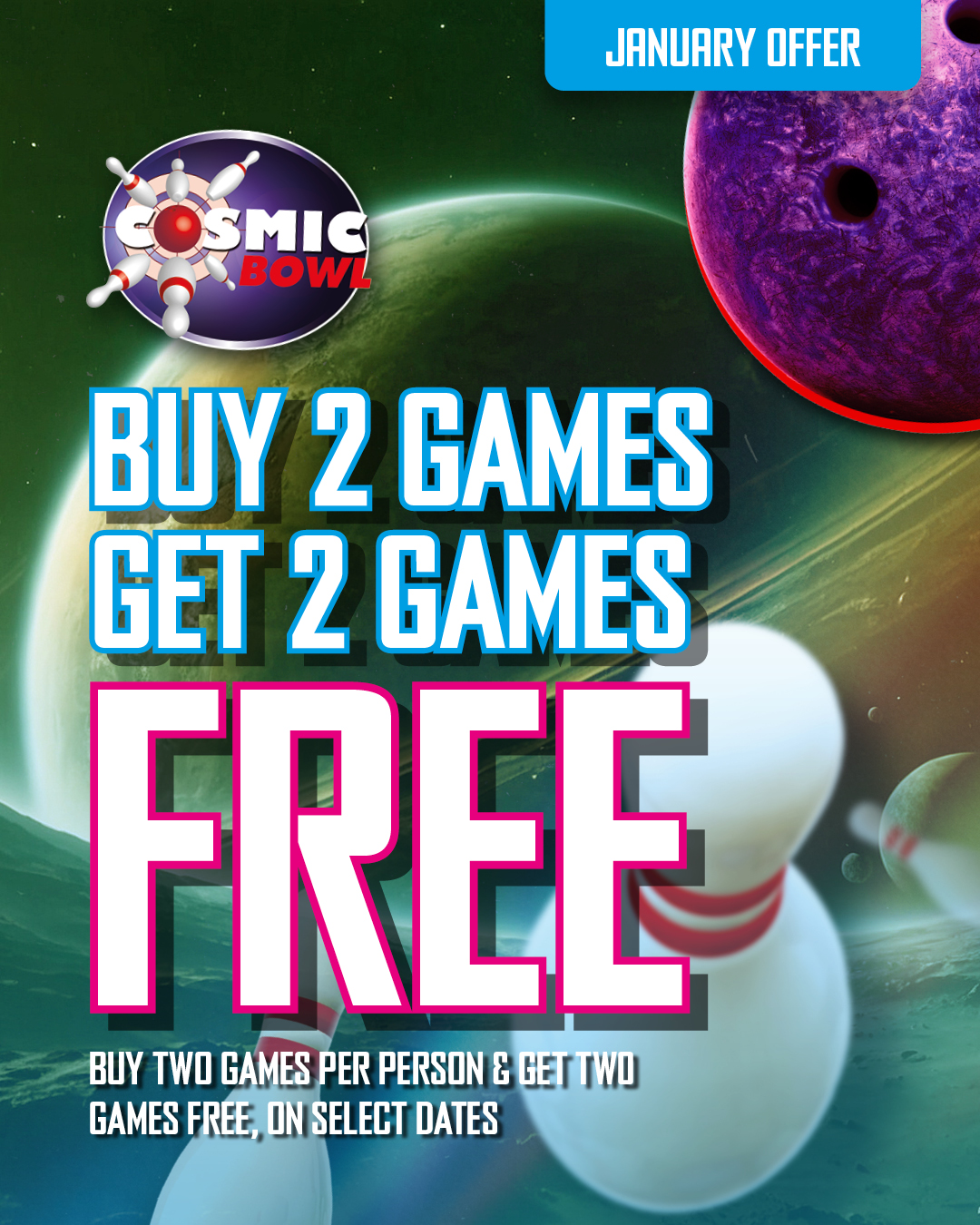 Cosmic Bowl January Offer Social – September 2025 Where we are Enter your postcode below for directions to Cosmic Bowl. Postcode Go