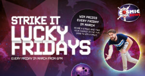 march Cosmic Bowl Strike It Lucky Fridays FB Web Image – February 2026 Where we are Enter your postcode below for directions to Cosmic Bowl. Postcode Go